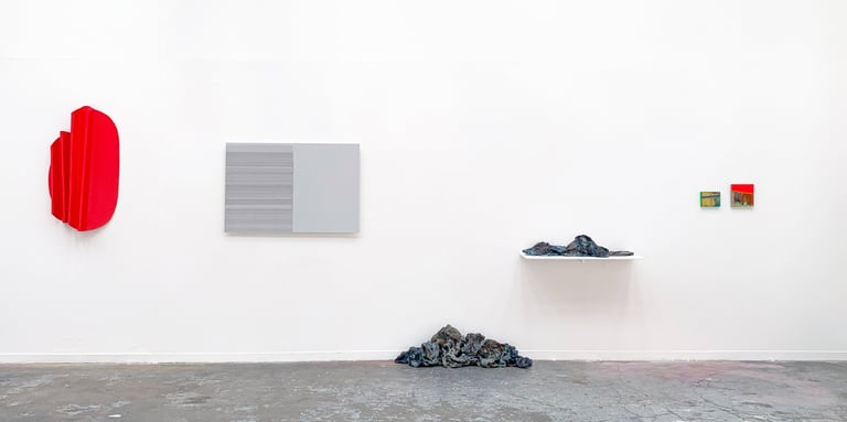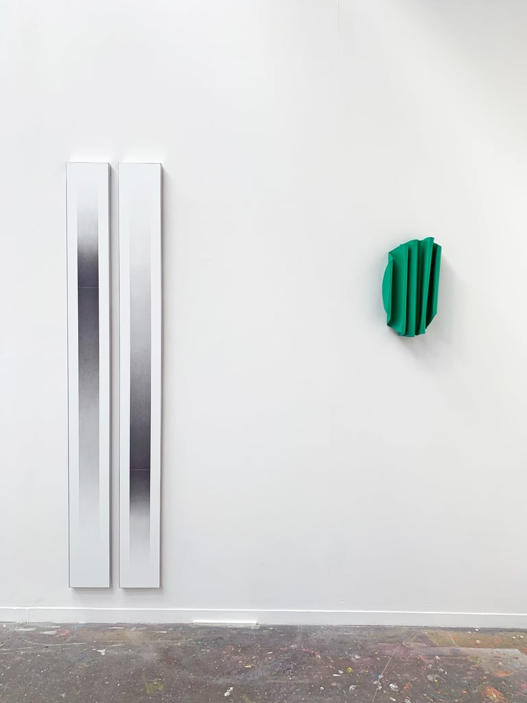 De gauche à droite : Mathieu Bonardet, Isometría V, 2022 | Estèla Alliaud, Sans titre, 2024 | Samuel Aligand, Diffuseur, 2024