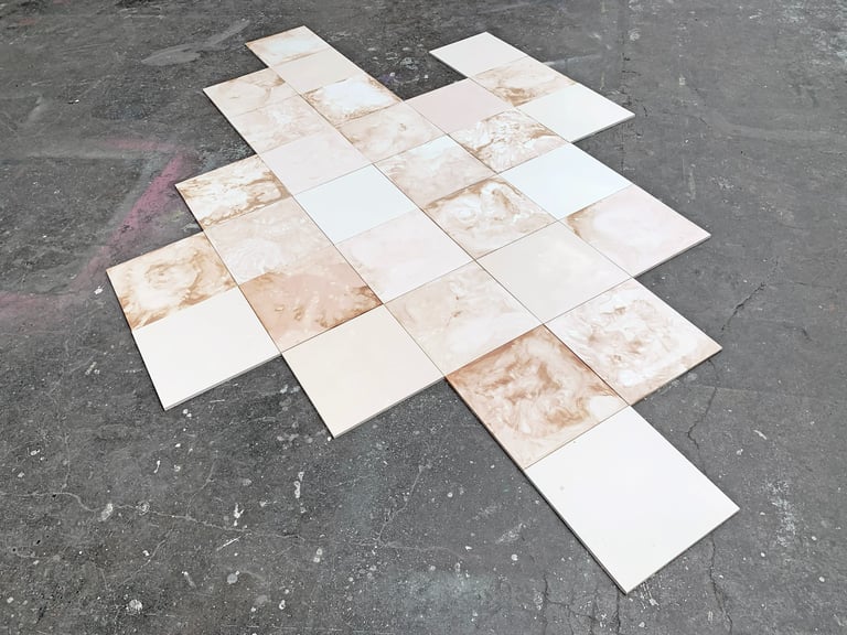 De gauche à droite : Mathieu Bonardet, Isometría V, 2022 | Estèla Alliaud, Sans titre, 2024 | Samuel Aligand, Diffuseur, 2024 | Dylan Caruso, Porn flakes, 2023 | Raphaëlle Peria, Ornithologie disparue, 2022 | Stéphani Hab, BA:AB AI.B, 2020 | Floriane Pilon, Anémomorphose, 2023 | Estèla Alliaud, Sans titre, 2024