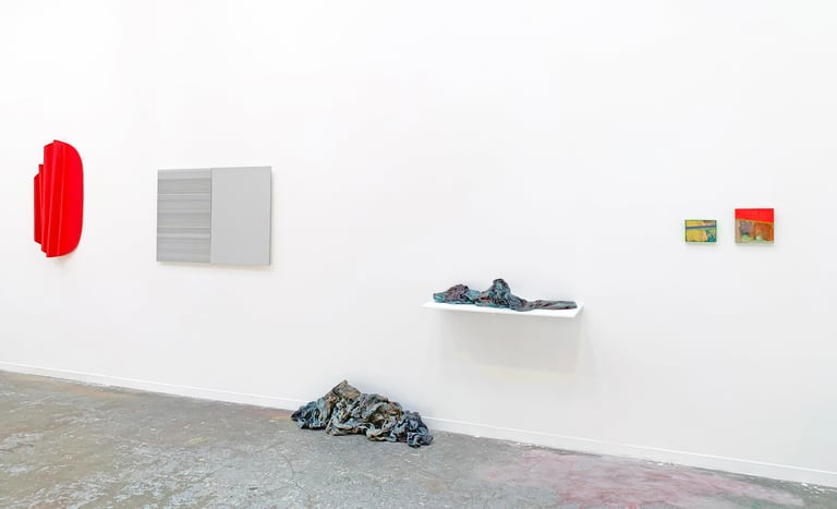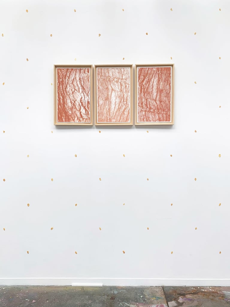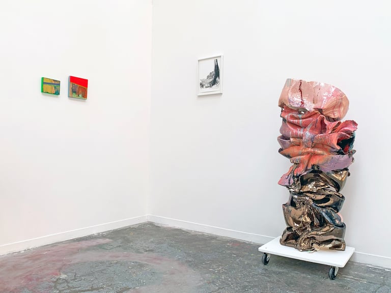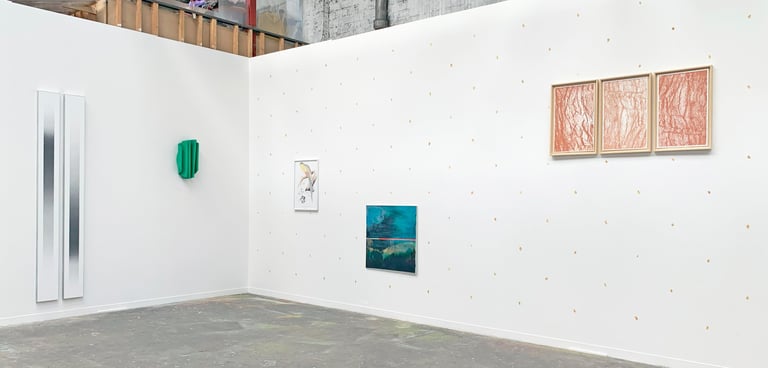 De gauche à droite : Dylan Caruso, Porn flakes, 2023 | Floriane Pilon, Anémomorphose, 2023 | Estèla Alliaud, Sans titre, 2024