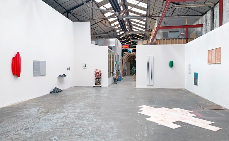 Vue générale de l’exposition Le rocher de Sisyphe, Ateliers Babiole, Ivry-sur-Seine, juin 2024