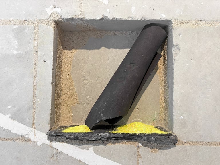 De gauche à droite : Samuel Aligand, Jonction, 2025 | Sarah Krespin, sans titre (jaune), 2025
