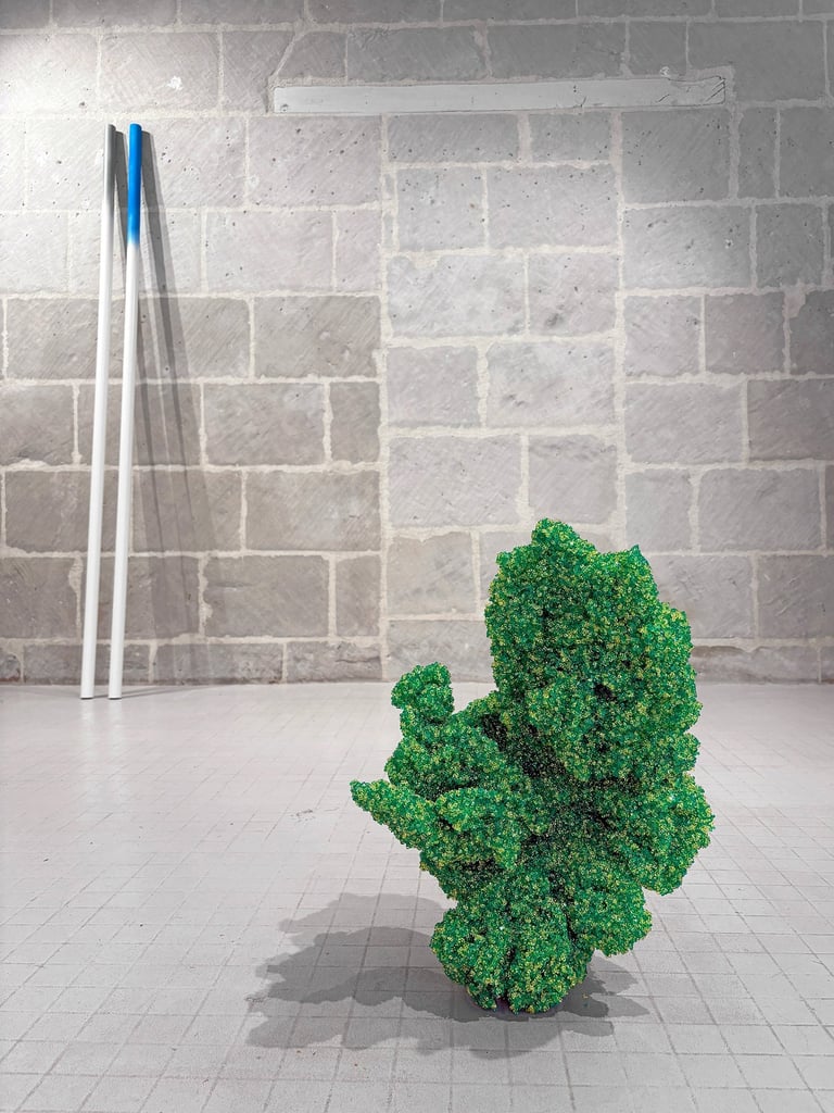 De gauche à droite : Samuel Aligand, Jonction, 2025 | Samuel Aligand, Récif (vert), 2023