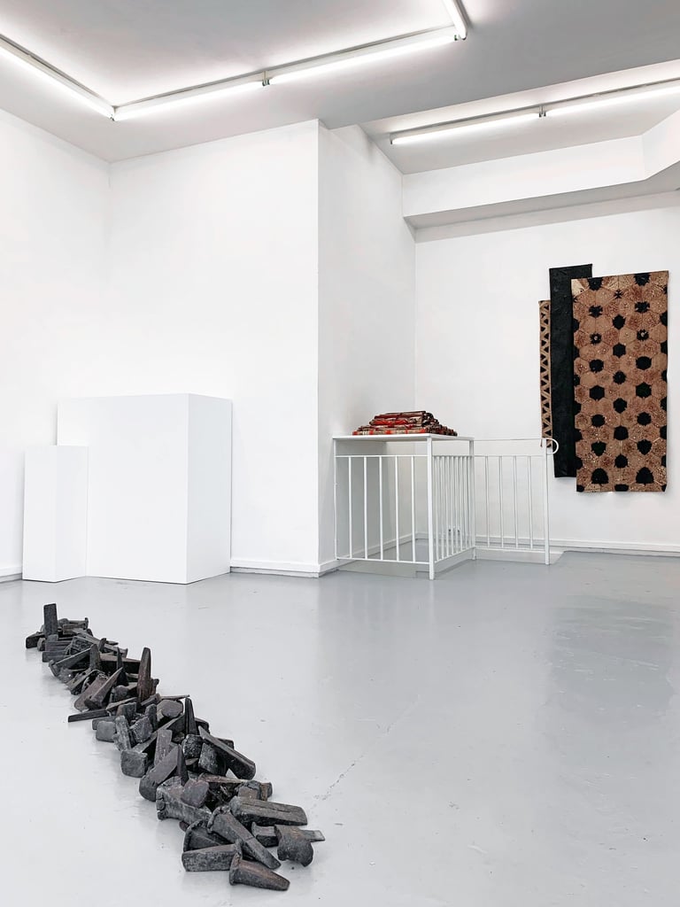 De gauche à droite : John Cornu, Trébuché, 2023 | Estèla Alliaud, sans titre, 2023 | Nelson Aires, Polukrômos, 2023